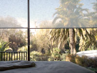 Tela que tamiza la luz de forma suave dejando un ambiente cálido.